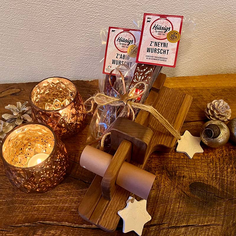 Geschenkset „Männersachä mid Hegu“Holz-Brettli